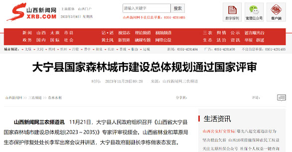 大宁县国家森林城市建设总体规划通过国家评审